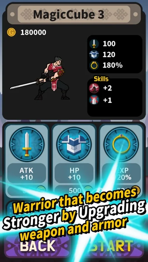 - Warriors that become stronger by upgrading a weapon and an armor