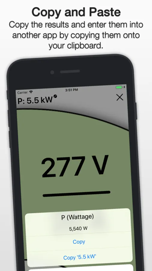 Answers are transposed to a (easier to read) simplified value. When in need for a precise answer, simply click on one of the answers and the precise value will display with the ability to copy that value or the simplified value. Paste that value anywhere throughout your device that allows pasting.