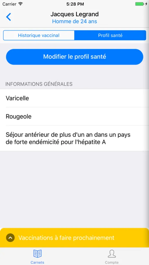 Améliorez votre pratique vaccinale grâce à MesVaccins Professionnels. L’application vous permet de conserver et de mettre à jour rapidement les carnets de vaccinations de vos patients, afin d’obtenir sans effort des informations précises sur les vaccins dont ils ont besoin.