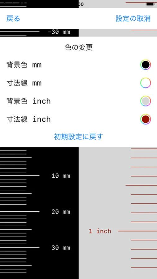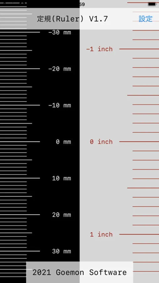 シンプルな定規、mmとinch表示で全てのサイズのiPhoneで正確に測れます。カッコいいでしょ