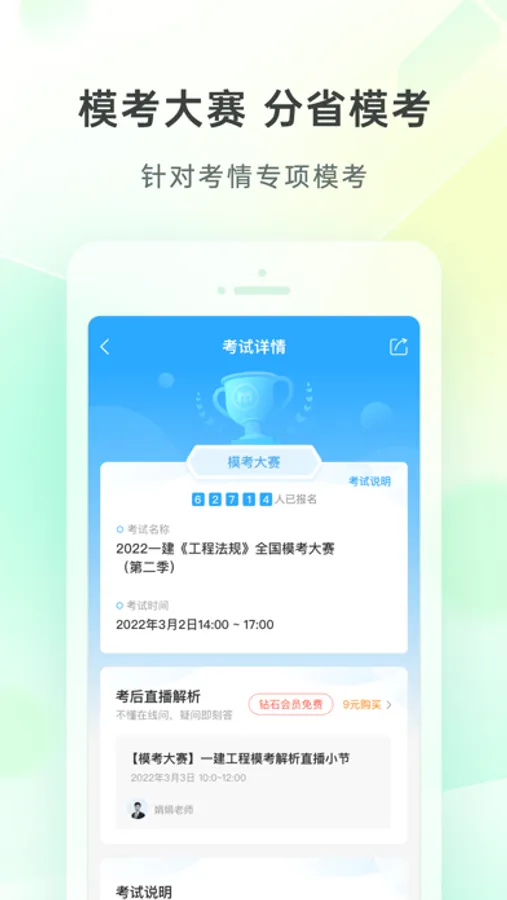「模考提醒」提前督促你参加模考,抓住模考机会。