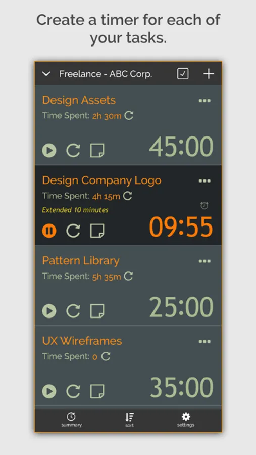• Sort timers by title, date created or elapsed time to see what you're spending most of your time on.