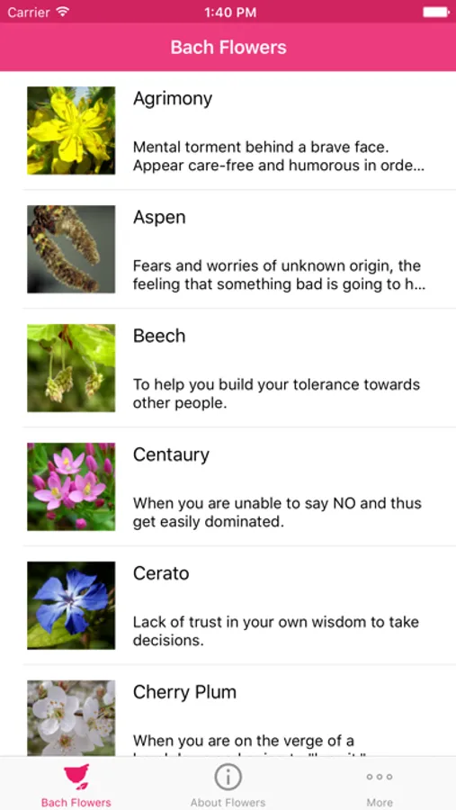 Bach Flowers Mobile App gives detailed insights of 38 Bach Flower Remedies. Elaborate explanation of each remedy along with nucleus of remedy, drug picture, preparation, philosophy etc makes the app ideal course material for Bach Flower Students & Therapists. Clear categorization of remedies are provided under 7 categories and 3 type viz, Twelve Healers, Seven Helpers and Second Nineteen.