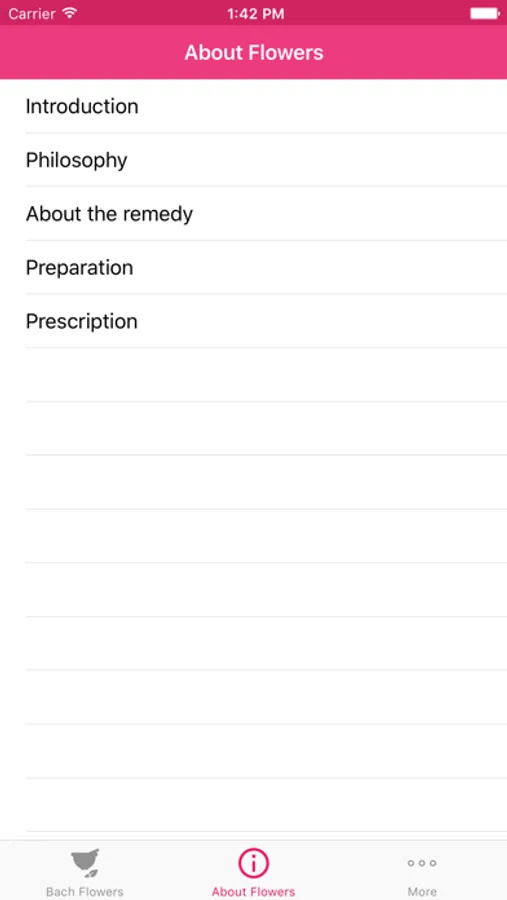 The App covers following sections on Bach Flower Remedies