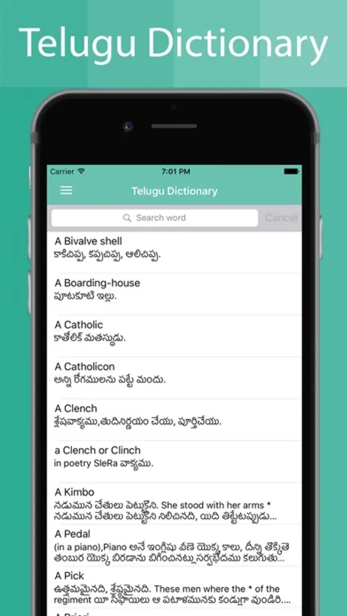 Learn the Telugu meaning of any English word at the time. This is the ideal and easiest tool to have on you iPhone or iPad. Telugu Dictionary in iPhone will help you