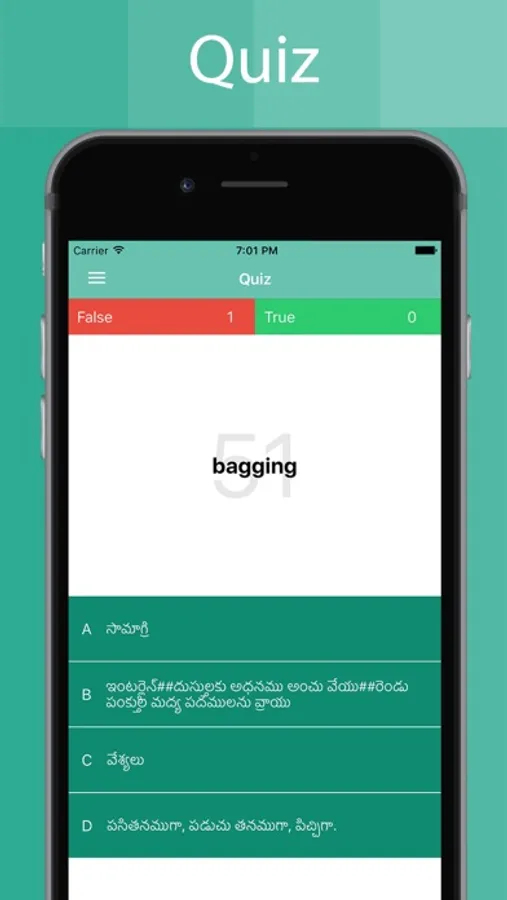 This Telugu Dictionary Contains Quiz too. you can test you Telugu skills using this multiple choice quiz and you can improve your Telugu language.