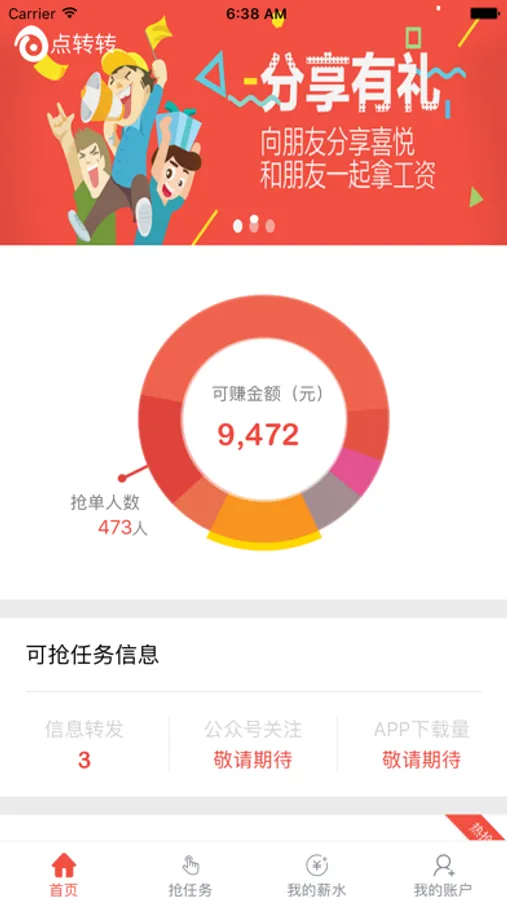 社交、朋友是我们生活的一部分,每个人在社交中都会形成有很多朋友圈,如何让朋友资源合理创造价值是我们一直专注研究分析的事业,团队通过多年的网络数据精准营销分析,及上百家软件平台开发运营经验,依托日益精进的互联网广告创意、网络访问行为分析、大数据采集优化等技术成果,于2016年推出点转转软件平台,为每个人无论在网络社交、学习、工作、休闲娱乐的同时动动手指分享文章、活动、APP、公众号到你微信朋友圈、QQ、空间、微博等就能为您创造价值。
