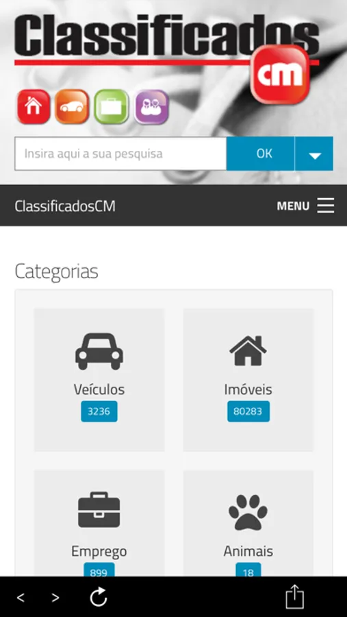 Instale a aplicação Classificados CM e coloque o seu anúncio ou procure algo que precise.