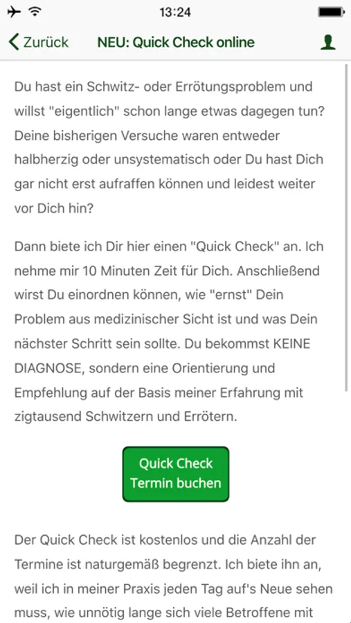 An übermäßigem Schwitzen - Hyperhidrose - oder krankhaftem Erröten - Erythrophobie oder Facial Blushing - leiden in Deutschland über eine Million Menschen. In dieser App informieren wir regelmäßig über aktuelle Behandlungsmöglichkeiten und erleichtern es Betroffenen, endlich etwas gegen ihr Leiden zu tun. Vom "Quick Check" bis zur komfortablen Rezeptbestellung.