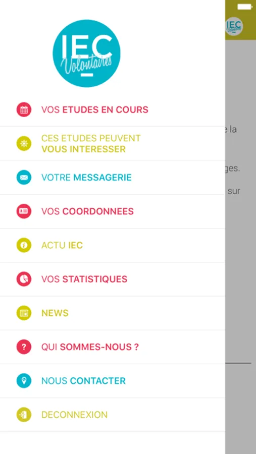 « IEC Volontaire» est une application dédiée aux volontaires faisant déjà partie de notre panel : Cette application a été conçue spécialement pour vous afin d’améliorer votre confort dans le suivi de vos études au quotidien.
