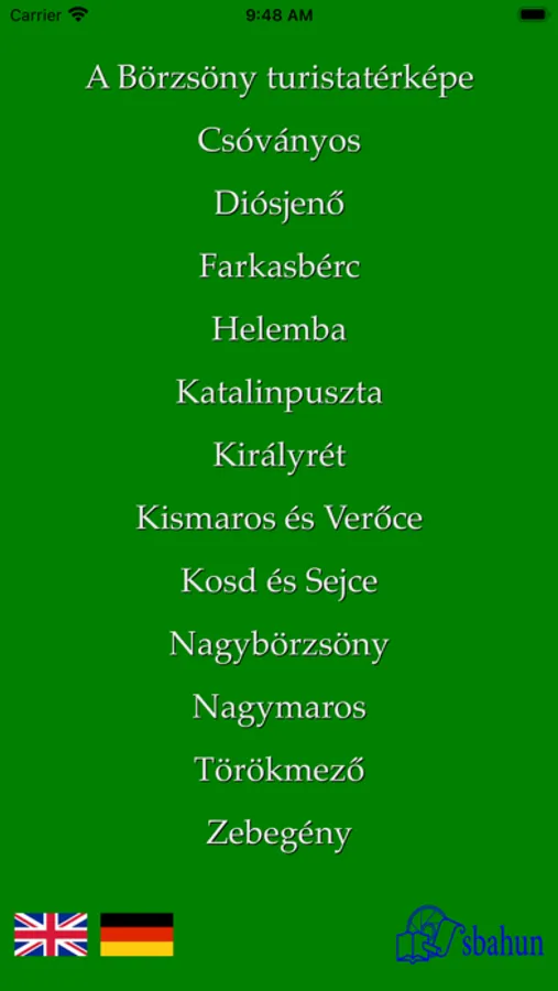 A Börzsöny hegység háromnyelvű turistatérképe.