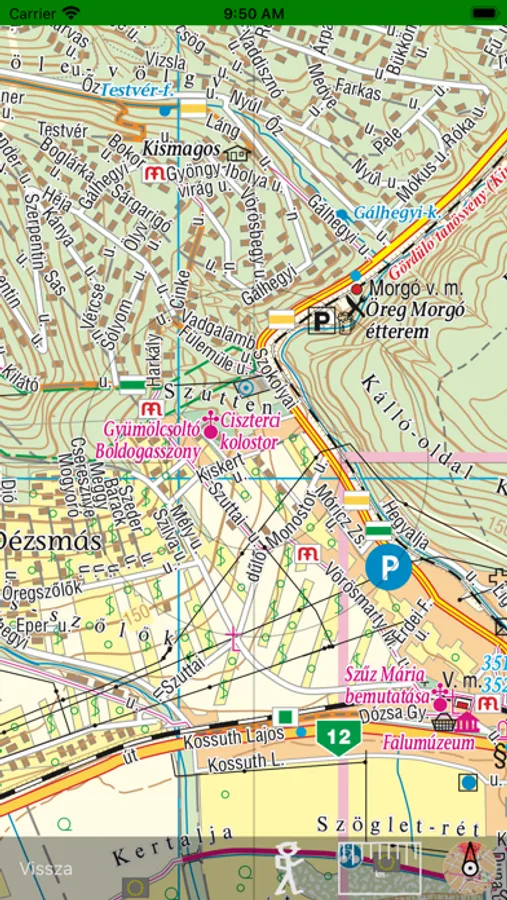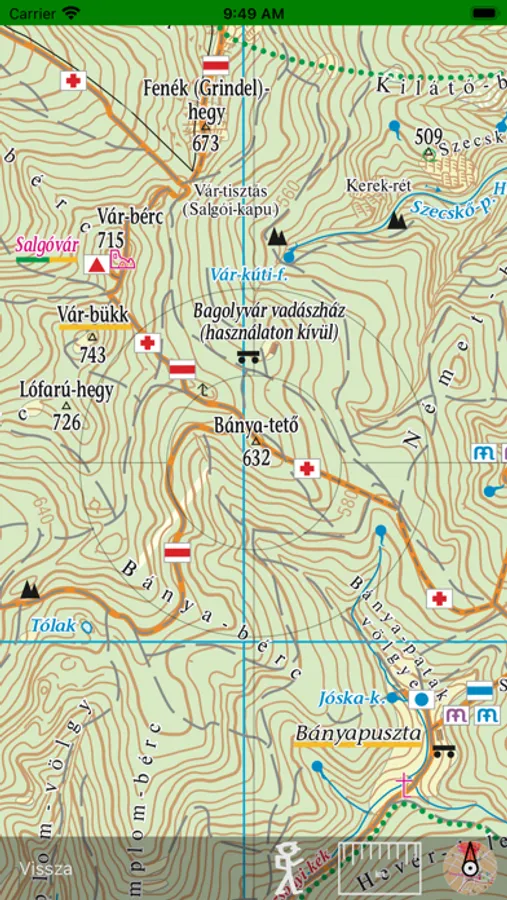 Az alkalmazás a GPS rendszer használatával a turista helyzetét pontosan mutatja.