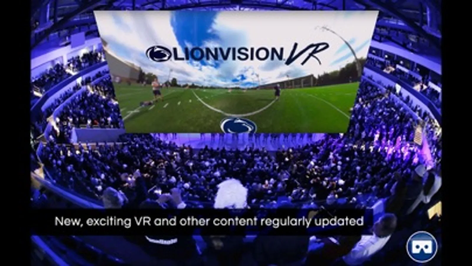 Ever wonder what it was like to stand in the huddle or run out the tunnel in front of 100,000+ screaming fans at Beaver Stadium? How about being the goalie against a 90 MPH slap shot? Or getting to see your favorite Nittany Lions weight training sessions? Penn State fans get to see the action like never before through your own smartphone. Step into the virtual environment of Penn State athletes with LionVision VR. You get to go behind-the-scenes of practice, see pre and post-game locker room coaches' talks and a wide array of iconic Penn State experiences, while immersed inside a customized virtual reality environment. 2D and 360 video is updated regularly with LionVision VR while growing a library of compelling content.