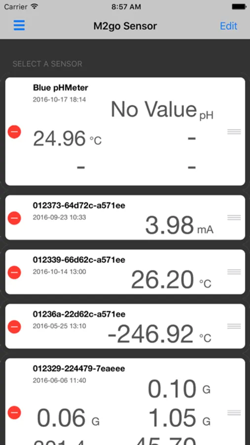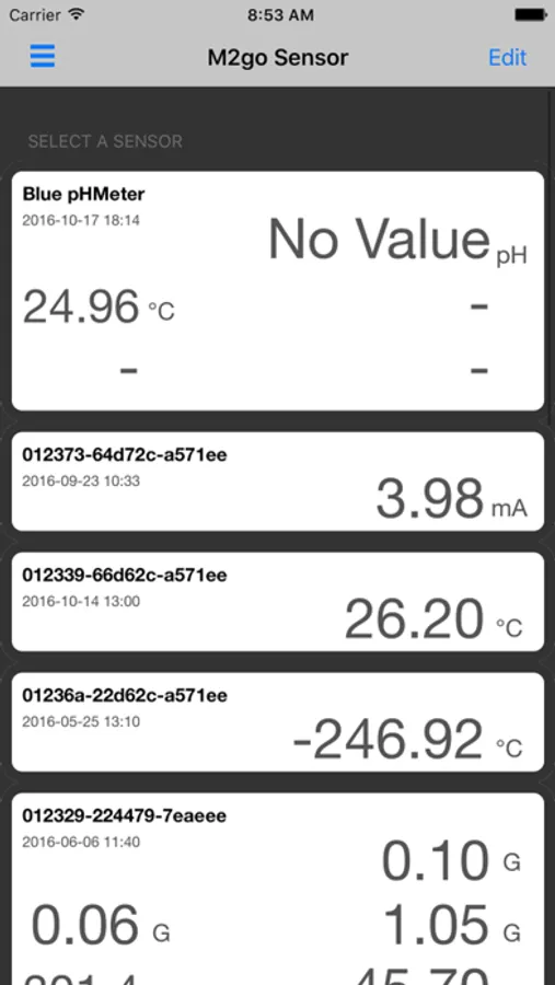 The sensor value readings can be viewed in real-time including:
