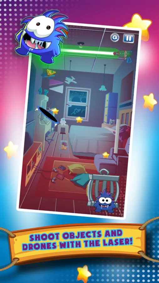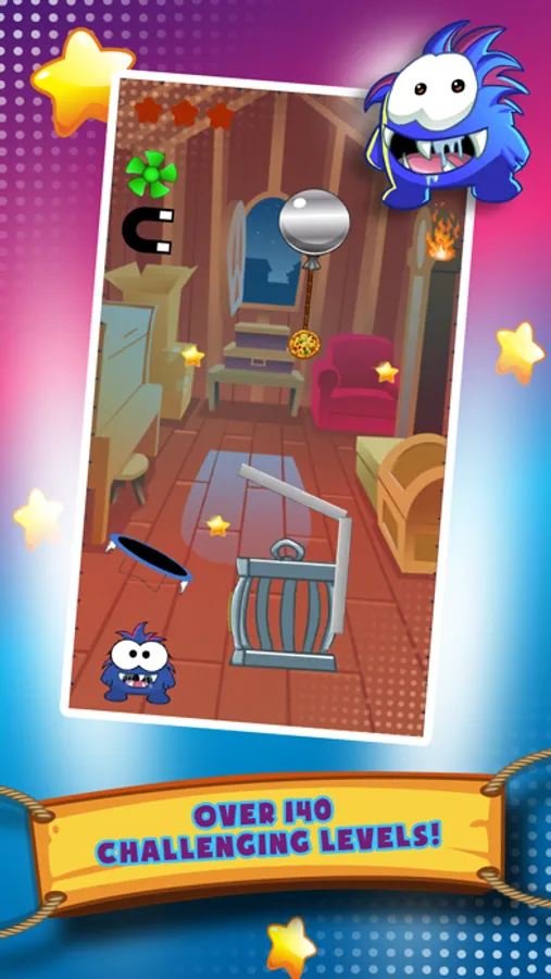 In the spirit of physics, the treats are connected to a balloon and the player uses various tools, such as fans, magnets and trampolines to make the balloon move around obstacles.