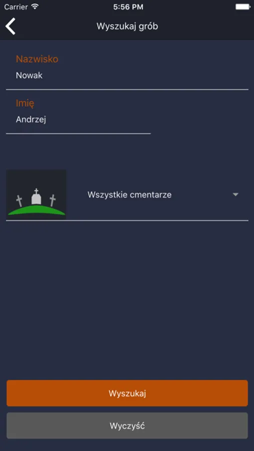 Aplikacja mobilna do wyszukiwania osób pochowanych na Olsztyńskich Cmentarzach przy ul. Wadąskiej (Dywity) oraz przy ul. Poprzecznej