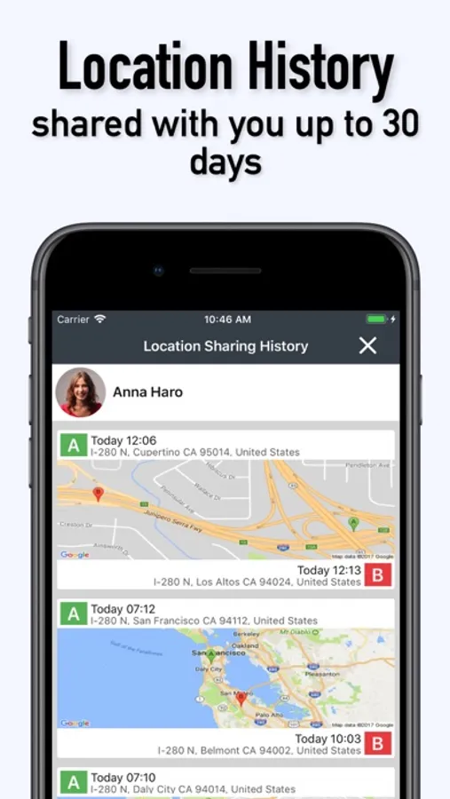* You can see the historical location change information of the people who shared their location with you up to 30 days.