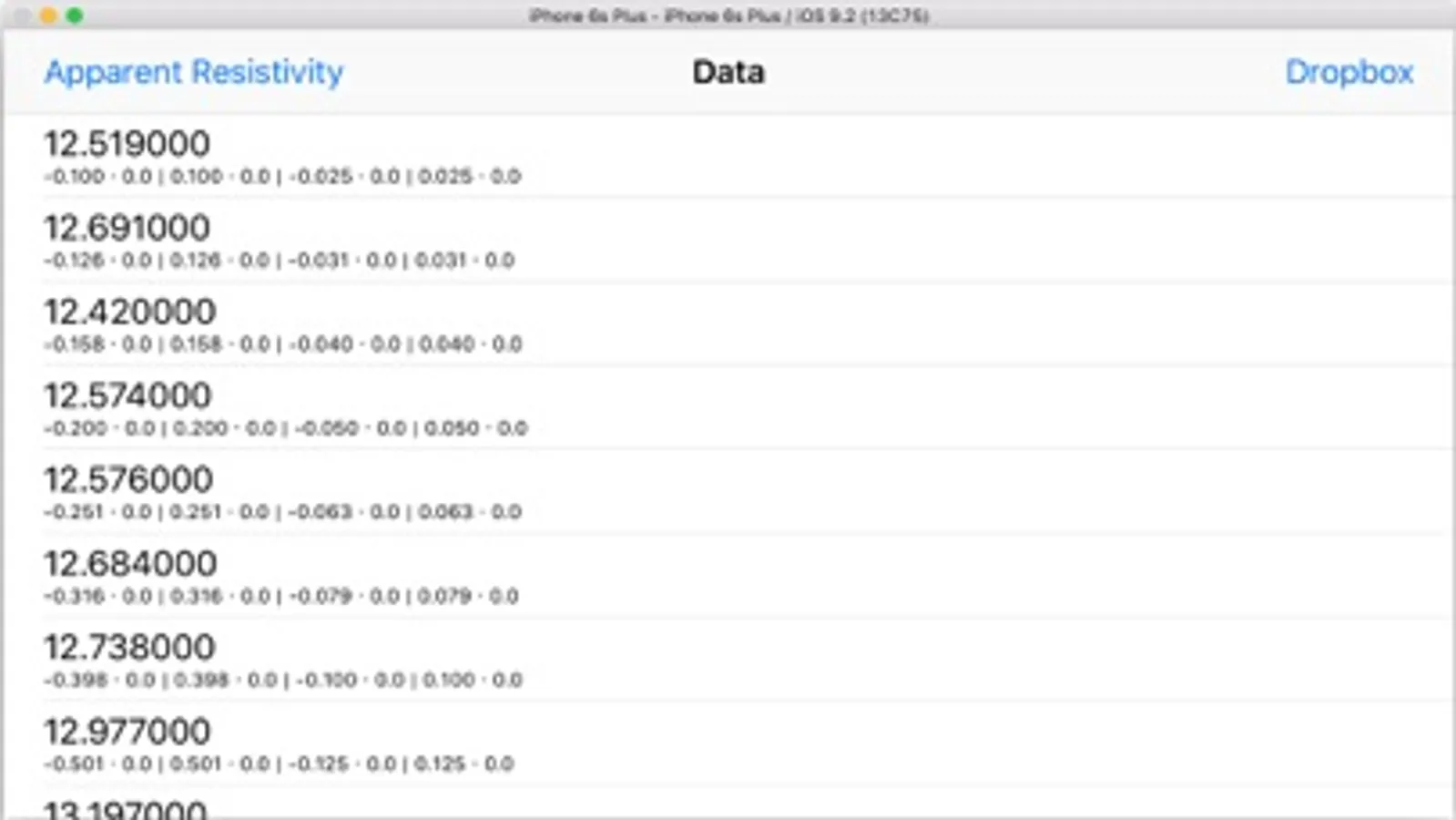 You can add any number of observations in your input file and must store it in your Dropbox. This App will connect with your Dropbox and let you select an input file in order to read the apparent resistivity observations.