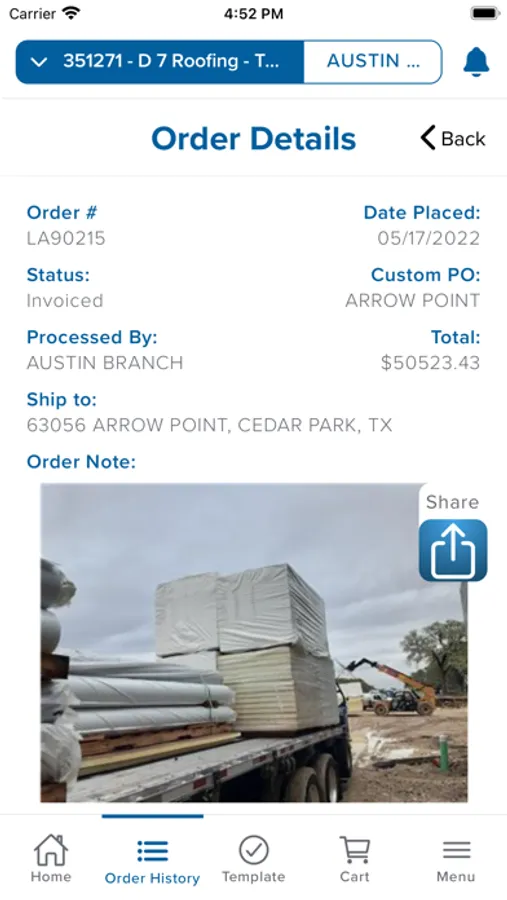 • Order materials for your projects on the go! Ordering is as easy as finding the products you need and adding them to your cart.