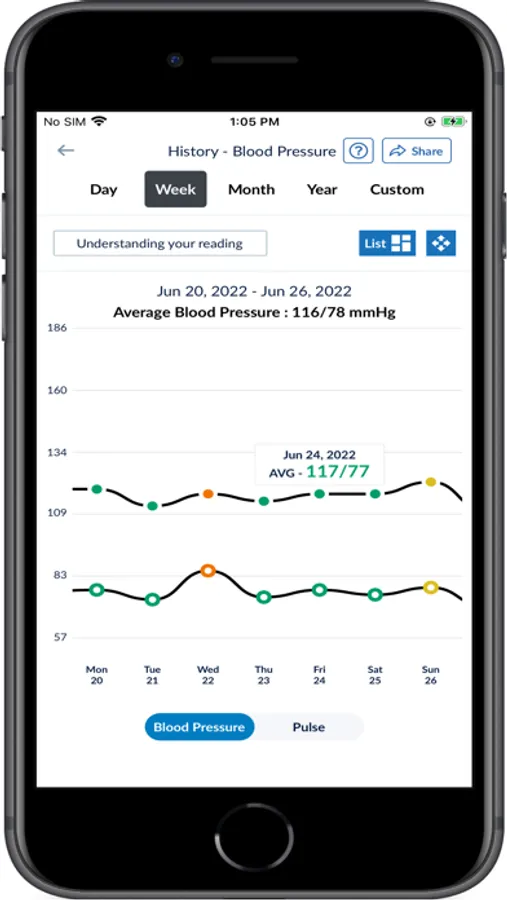 • Get a complete view of your blood pressure with systolic, diastolic and pulse readings