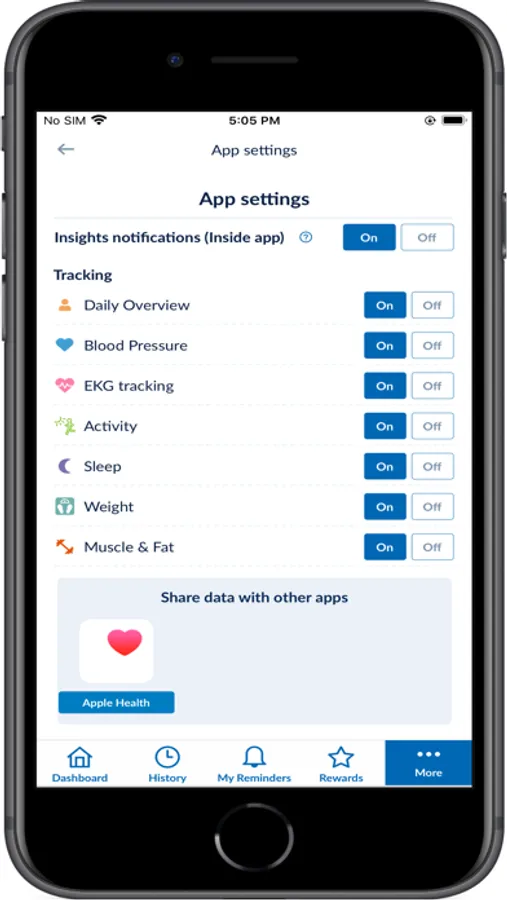 • Access additional historical health data around sleep, weight, EKG, activity and more