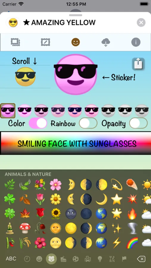 118 Emoji in this sticker pack for iMessage.