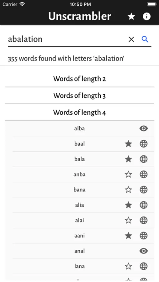This is a simple app that lets you unscramble almost any scrambled word in the English dictionary. Not only that but the app goes through a dictionary of over 110,000 words and provides you a list of possible words that can be formed with the combination of letters you entered.
