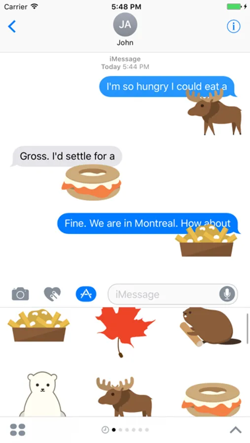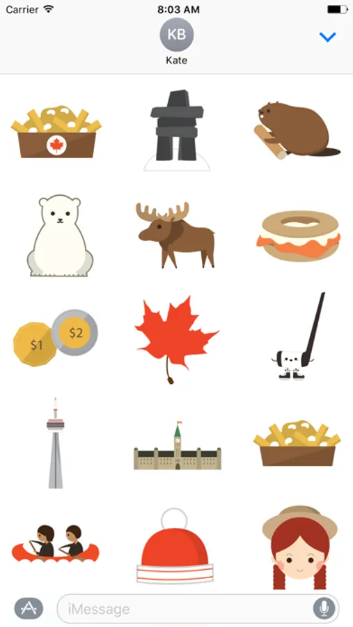 Add some Canada to your everyday texts. We wanted to share some of what makes Canada so great in stickers. Everyone needs to try our poutine, Montreal bagels and maple syrup. To visit our amazing landmarks like Niagara Falls, the Parliament buildings and the CN Tower. And to see our many amazing animals, like a moose or a beaver. You probably don't want to see a polar bear in person, trust us.
