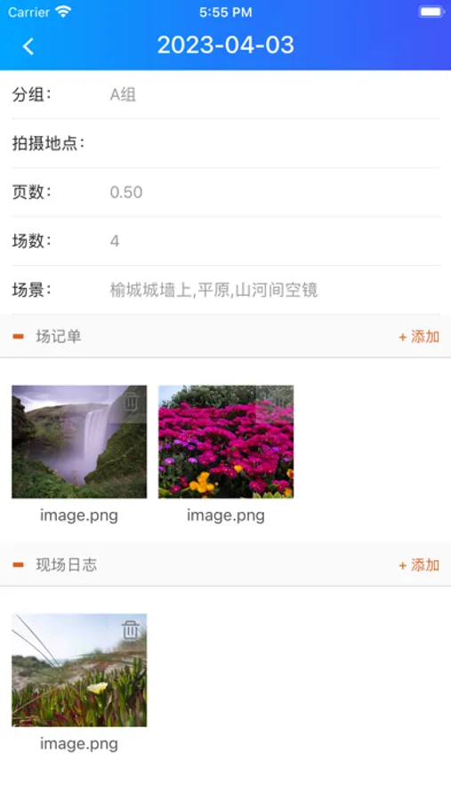 6.现场日志---方便剧组相关人员记录当天拍摄情况。
