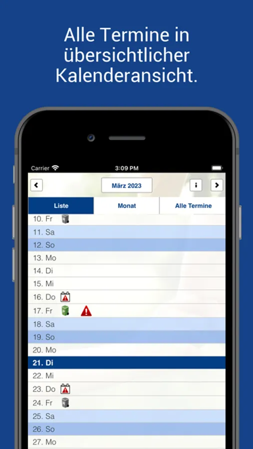 * Alle Termine in verschiedenen Kalenderansichten. Schafft Überblick in jeder Hinsicht!