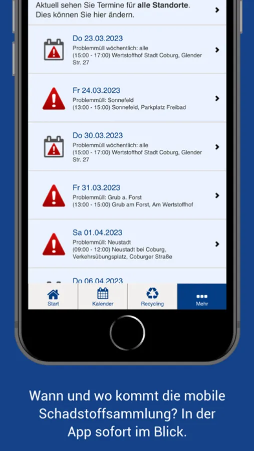 * Wann und wo kommt die mobile Schadstoffsammlung? In der App sofort im Blick.