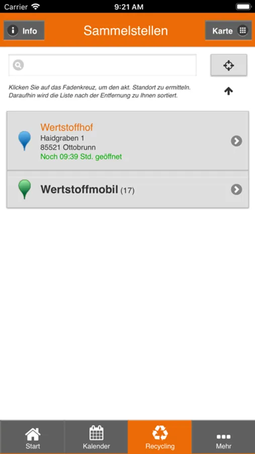 * Standortabfrage zum noch leichteren Finden der nächsten Sammelstelle.