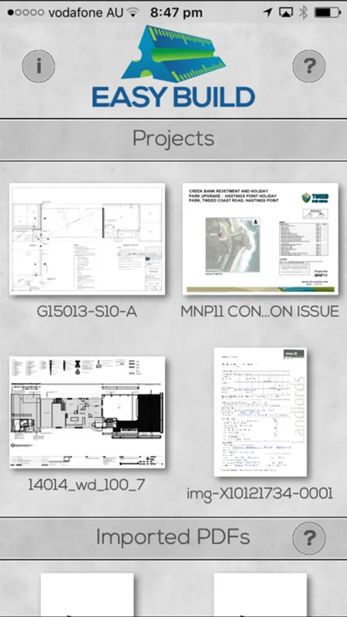√ Upload your PDF drawings by directing the file from your email or Itunes account. Open it in the 'Easybuild' app and recreate your project.