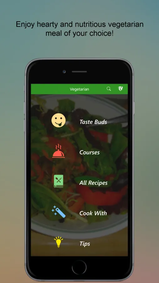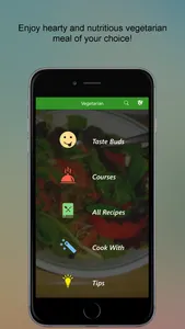 All the recipes in Vegetarian Recipes SMART Cookbook have been organized and cataloged, so that you can easily find any recipes by Courses, Taste Buds, Cuisines, Ingredients and your Dietary needs like Green leafy or starchy vegetables, Legumes & Beans, Grains, Fruits , Dairy products & many more.