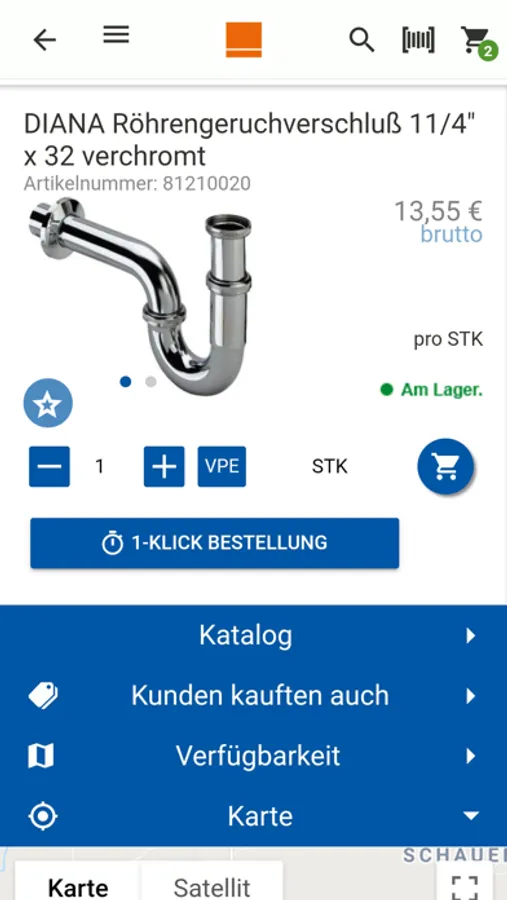 Zudem wird Ihnen auf Wunsch die Verfügbarkeit der gewünschten Artikeln direkt in den einzelnen Standorten angezeigt. Die verschiedenen Niederlassungen sind durch das integrierte Navigationssystem mit nur einem Klick für Sie zu finden.
