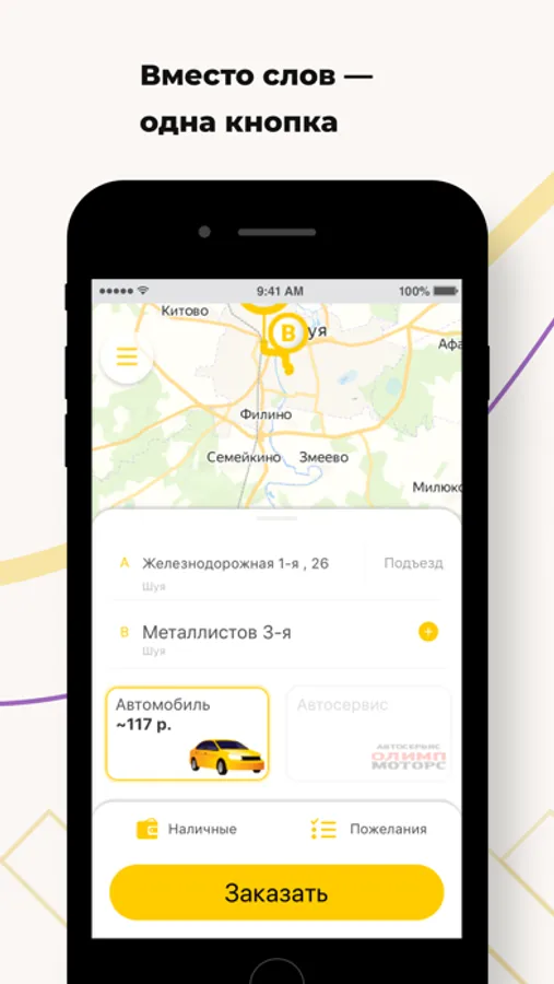 Заказывайте Такси 31313 Шуя в городе Шуя в Ивановской области через приложение. Это в 3 раза быстрее, чем по телефону! Между желанием доехать до нужного места и поиском автомобиля — пара секунд.