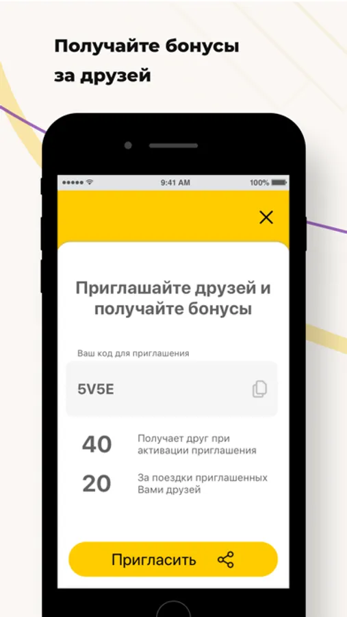 Приглашайте друзей в приложение и зарабатывайте бонусы с помощью реферальной системы. Оплачивайте ими и экономьте на поездках.