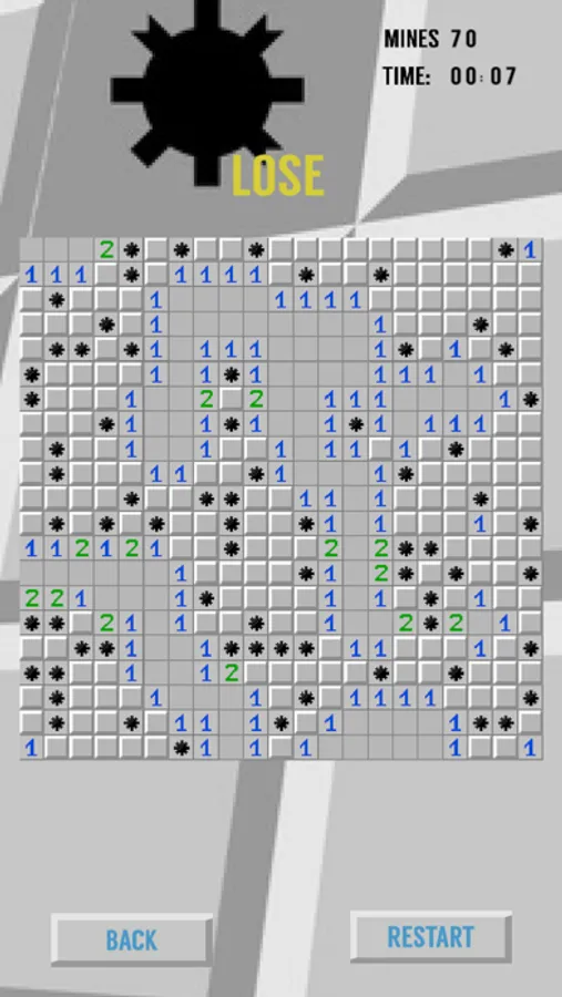 There are 3 levels of difficulty, 9 rows by 9 columns, 21x21 and 21x31. Compare how many wins you've got with your friends and the be the most wins have to be the best!