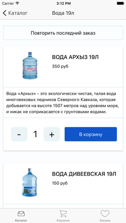 Приложение для доставки воды и другой продукции Торговой Компаниии "Источник".