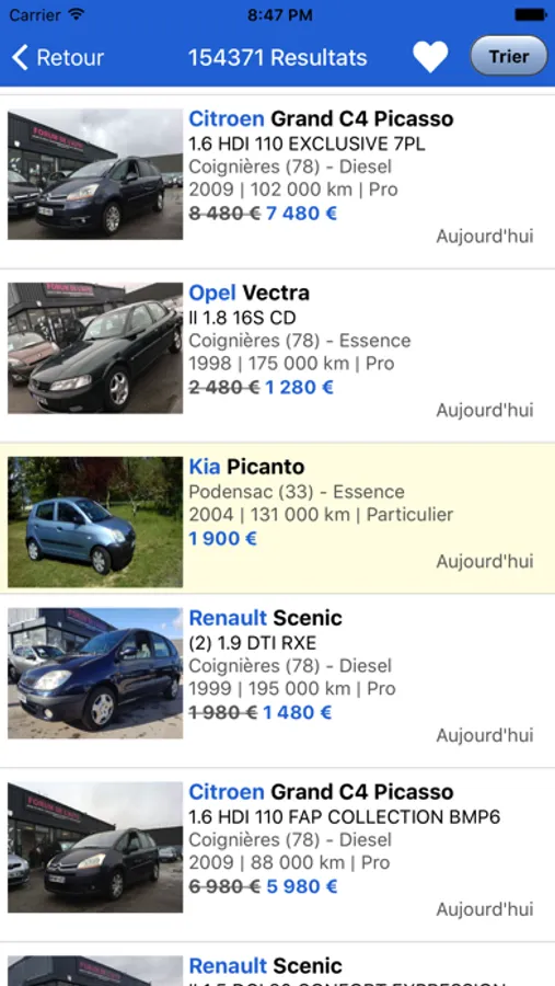 - Nombreux tris possibles, notamment par proximité selon le nombre de Kilomètres de votre position. Tri par Prix, Km, Distance, Date de publication, Année…