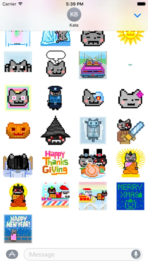 Express your happiness, sorrow, love and other precious feelings with these hilarious Nyan Cat and Tac Nayn stickers. Additionally, there are also some seasonal stickers included for the upcoming Holidays like Halloween, Thanksgiving, Bodhi Day, Christmas and New Year's Day!