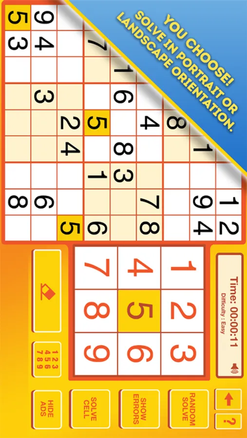 • Use Hints to Show Errors, Solve Any Cell or Solve A Random Cell
