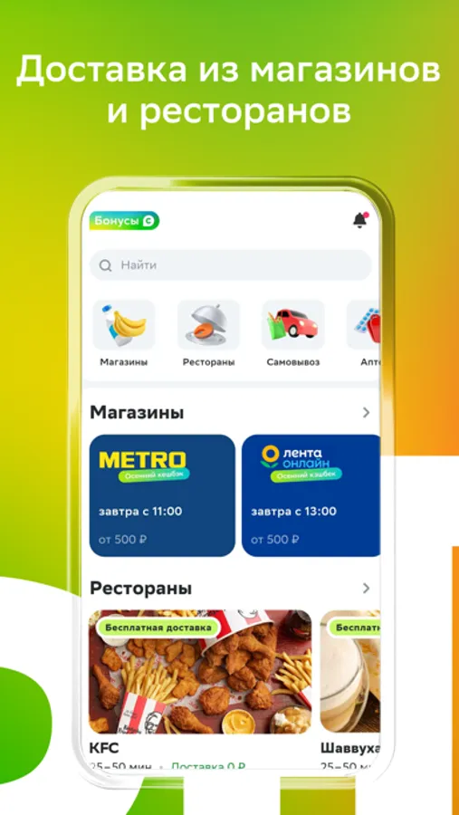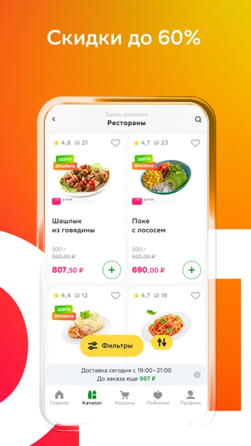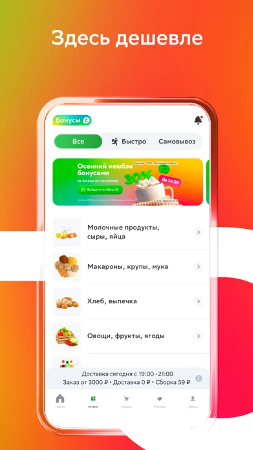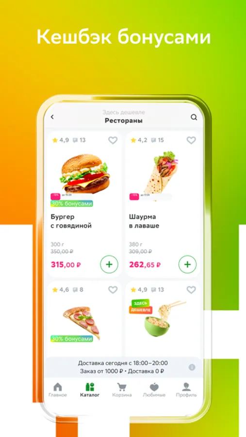 Чтобы заказать продукты и еду из ресторанов в СберМаркете: