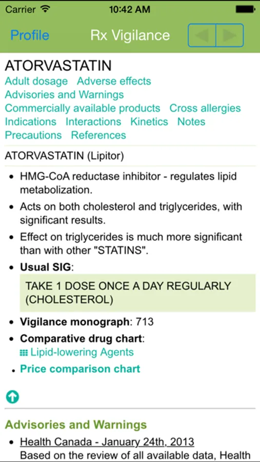 Already used by thousands of physicians, pharmacists, nurses and other health care professionals across Canada, RxVigilance provides you with relevant and up to date information from several dozen leading reference sources. Drug monographs, pharmacological profile analysis, and information on natural products and travel destinations are among some of the many features you can now access through your device.