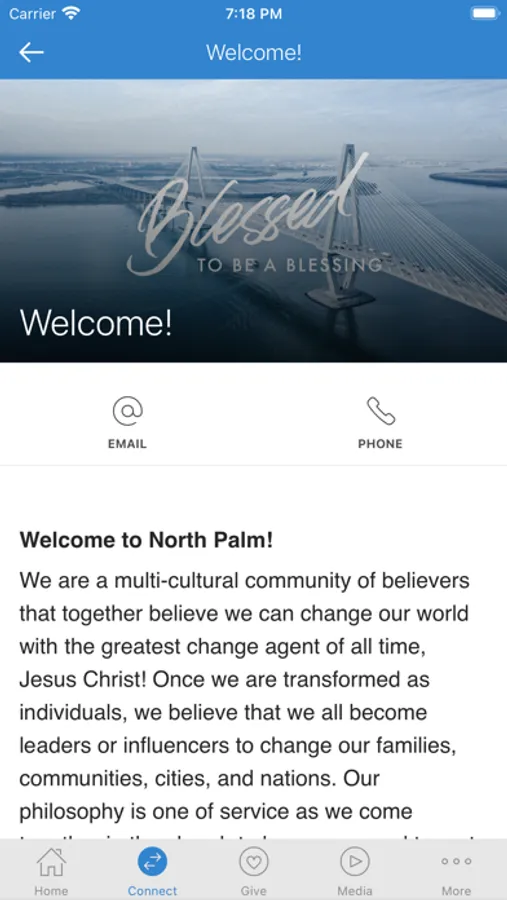 Connect and engage with the North Palm Church app! You will be able to view upcoming events, give, read the bible, and more!