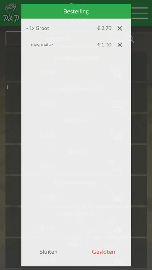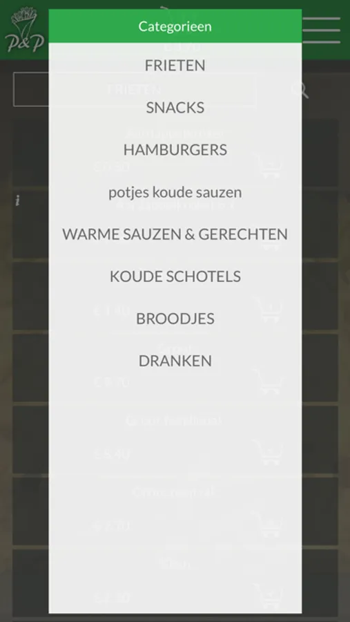 Deze app laat toe om je maaltijd te bestellen bij Frituur P&P