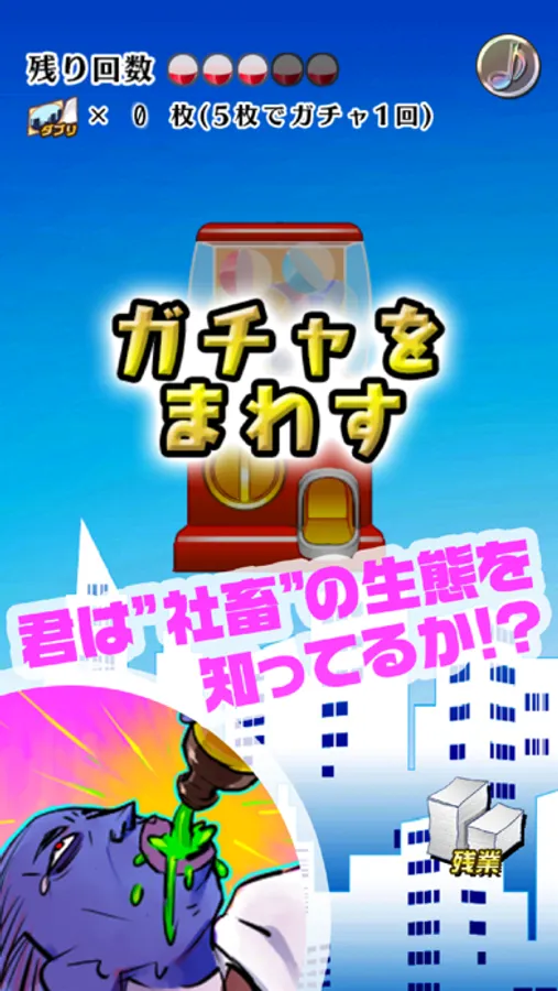 ガチャの回数がなくなったら残業画面に行って残タスクを0にするとガチャの回数が増えます!