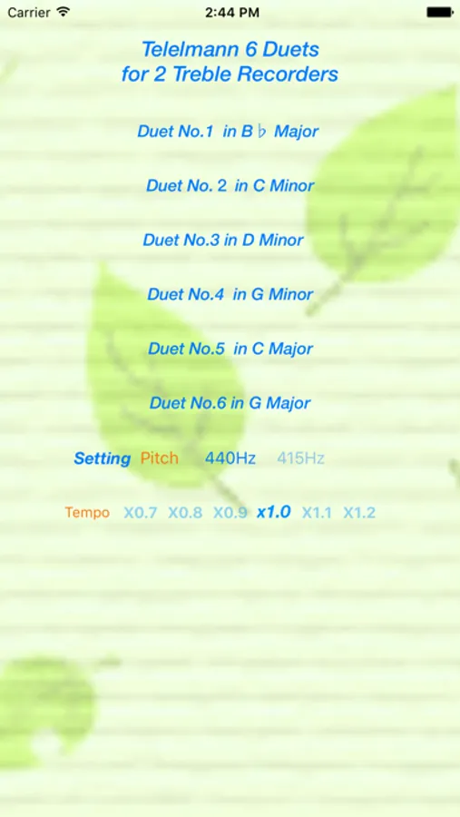 This App contain the Telemann 6 Duets for 2 Treble Recorders .Since it is independent of each part, by playing the other part, you can practice together.