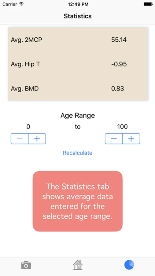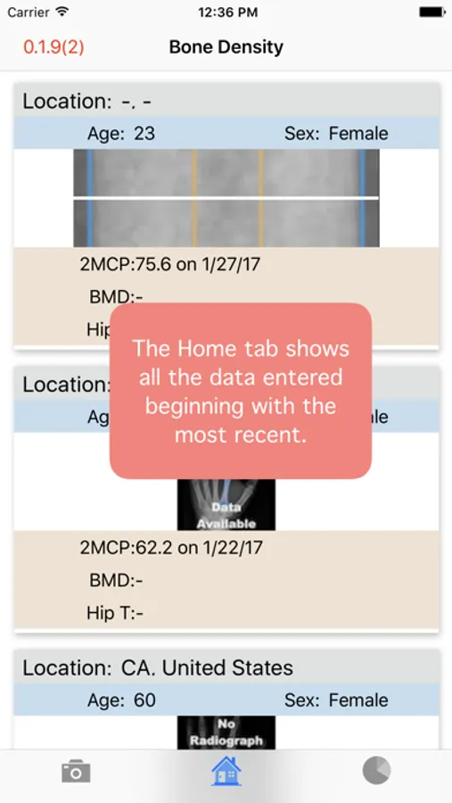 This app allows you to estimate an individual's global T score in an office or hospital setting, by simply taking a photo of the 2nd metacarpal. While this measurement may not completely replace DXA, it may help a clinician screen a patient's bone quality to assist in treatment decisions and determine who may benefit from further bone density testing or osteoporosis treatment.