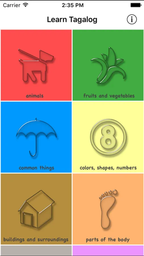 Are you or your kids having trouble learning the national language of the Philippines (Tagalog)? Perhaps this app should help you solve your problem. Loaded with variety of essential topics, the app features tons of colorful and carefully chosen flashcards that would aid beginners by introducing them to common Tagalog words and kick-start their way to understanding the official language of Filipinos.